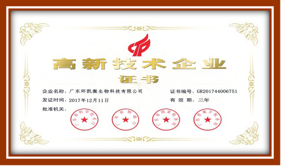 环凯拥有行业领先的研发生产硬件,并初步形成四大主体三大基地战略发展布局。公司位于广州科学城的研发生产基地,建有多条业内先进的生产线和高标准的研发、质控实验室,已通过了 ISO9001 质量管理体系认证。环凯先后获得国家高新技术企业、院士工作站、博士后创新实践基地、积极承担国家行业标准制订工作企业、广东省著名商标、广州市著名商标等多项资质认定,自主创新能力和产品技术优势在国内处于行业领先地位,为我国食品、药品安全行业和广东省生物产业的发展做出了积极贡献!