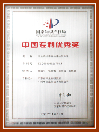 中国专利优秀奖“微生物抗干扰快速检测方法”;