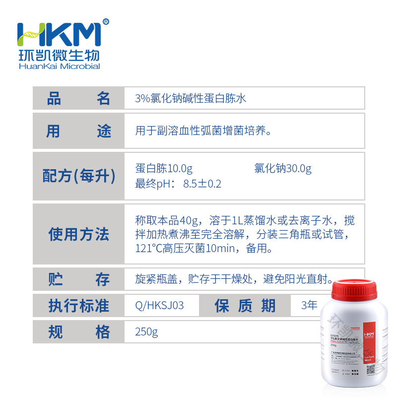 025015 3%氯化钠碱性蛋白胨水 250g/瓶