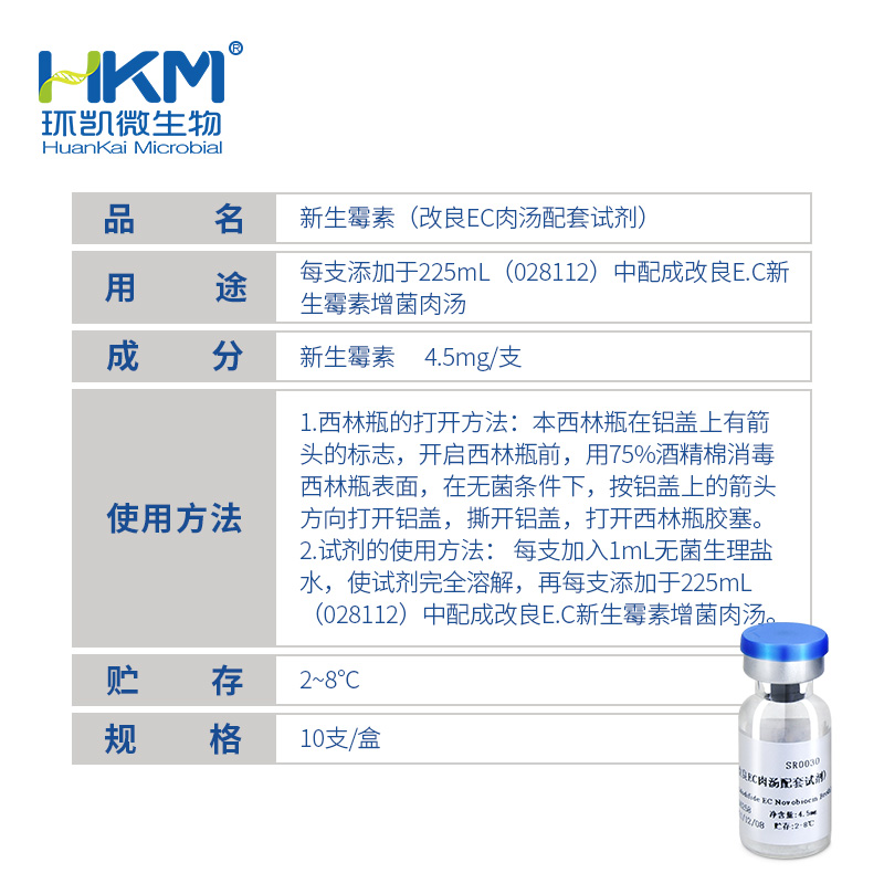 产品名称:新生霉素(改良EC肉汤配套试剂)