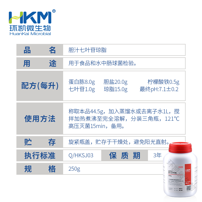 028367 胆汁七叶苷琼脂培养基 250g/瓶(粪链球菌(肠球菌)检验检测常用培养基):