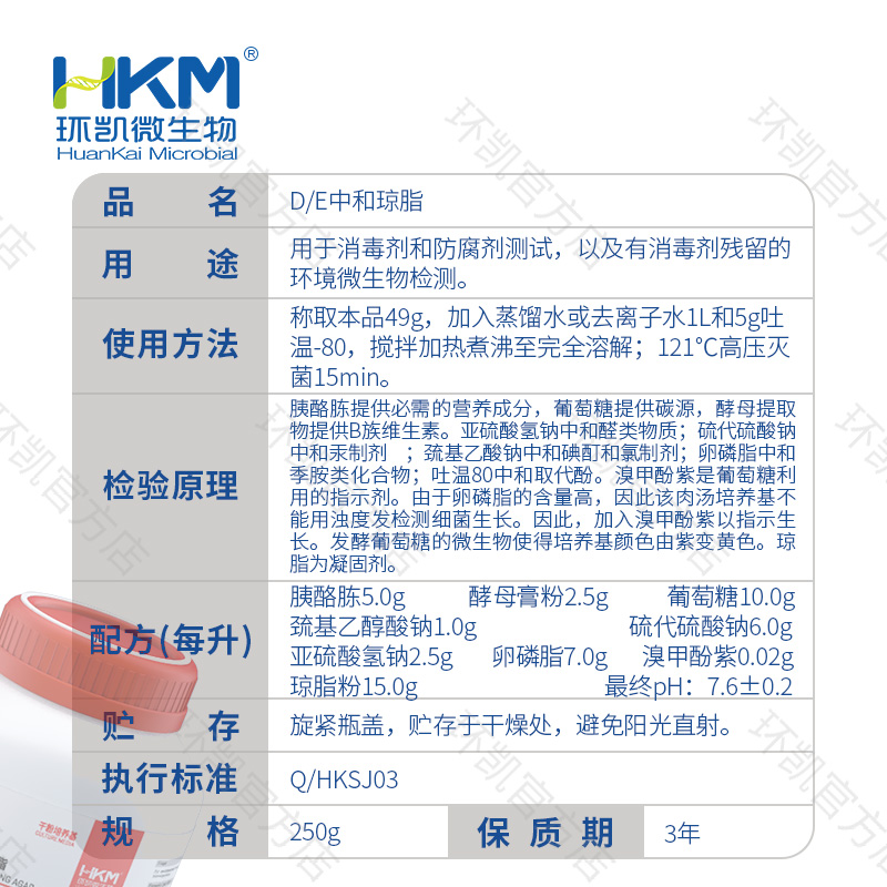 用途:用于消毒剂和防腐剂测试,以及有消毒剂残留的环境微生物检测。