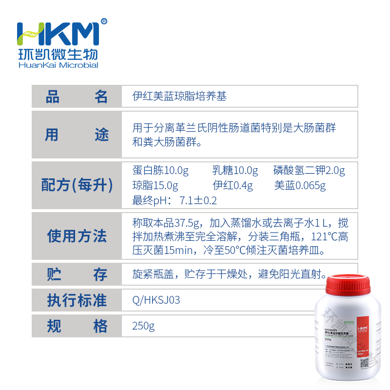产品名称:伊红美蓝(EMB)琼脂颗粒培养基