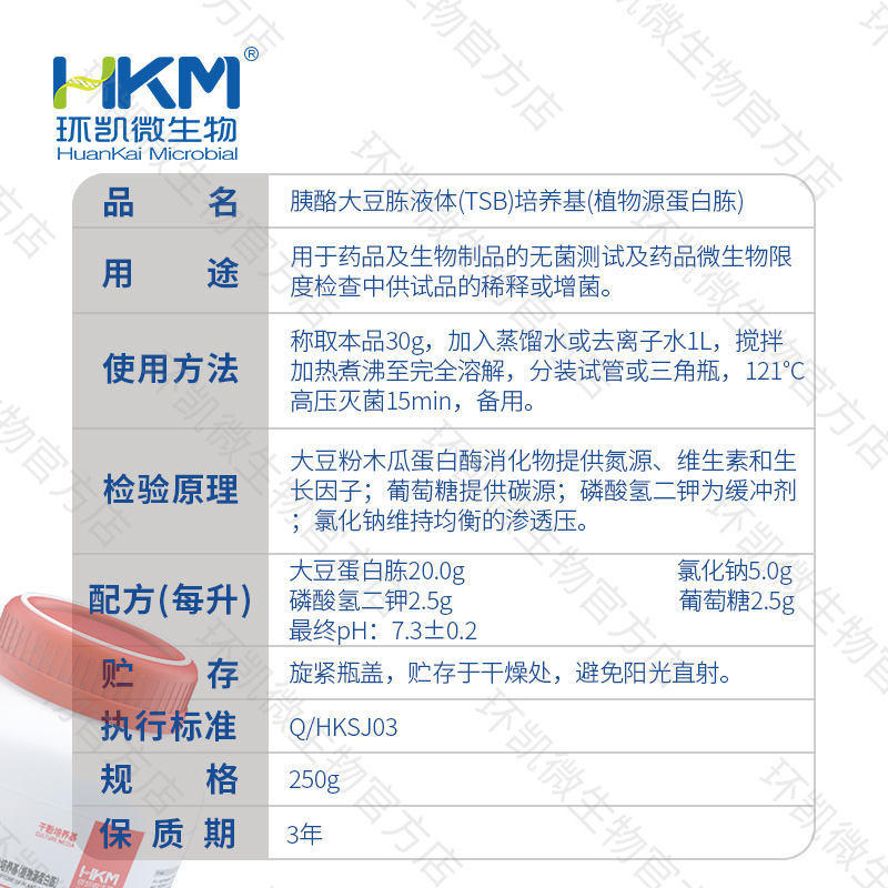 执行标准:Q/HKSJ 03 广东环凯微生物科技有限公司企业标准  普通微生物培养基