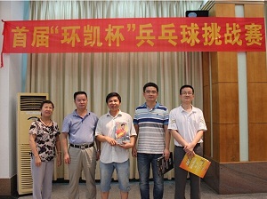 为丰富我司职工业余生活,增强职工体质,营造良好的体育运动氛围,经过紧锣密鼓的精心筹备,首届“环凯杯”乒乓球挑战赛于2014年5月9日正式拉开帷幕。本次比赛设男单、女单和混双三个项目。