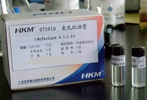麦氏比浊管是McFarland发明的一种用于微生物比浊的不同浊度的标准浊度管。具体的配制方法是根据硫酸和氯化钡的比例来定的,不同比例生成的硫酸钡沉淀的浓度不同,且都有定值。