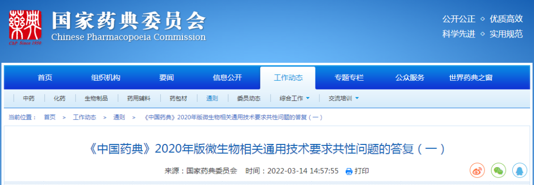 《中国药典》2020年版微生物相关通用技术要求共性问题的答复(一)