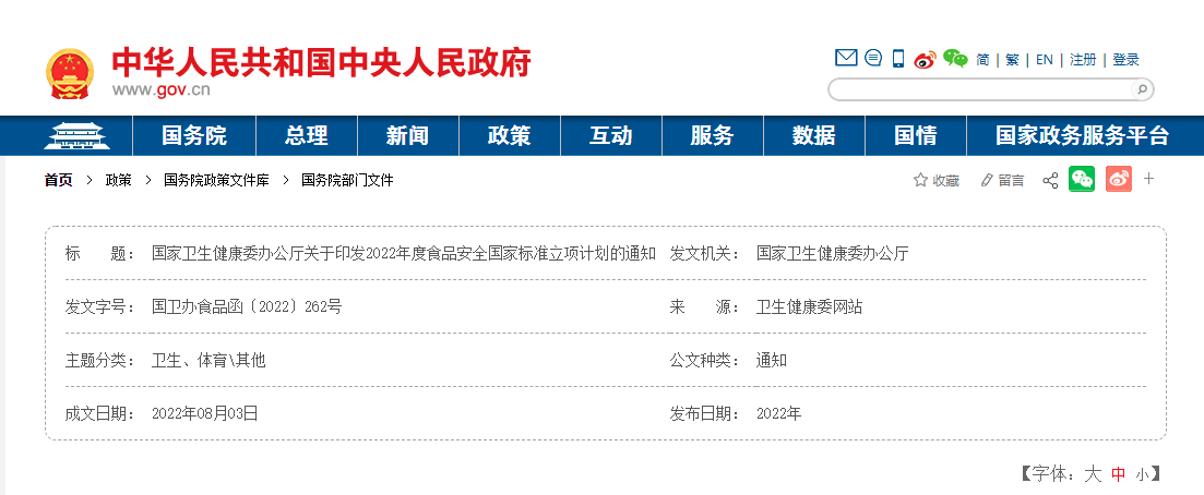《2022年度食品安全国家标准立项计划》发布