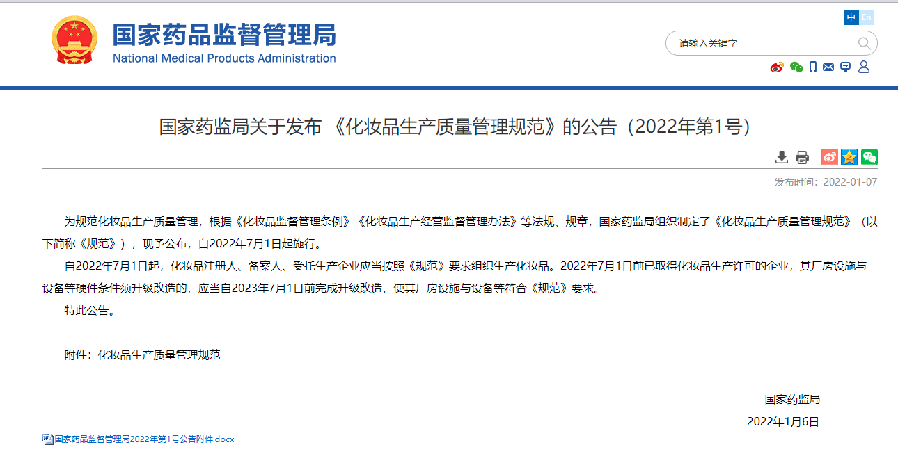 《化妆品生产质量管理规范》发布!生产车间与实验室检验有要求
