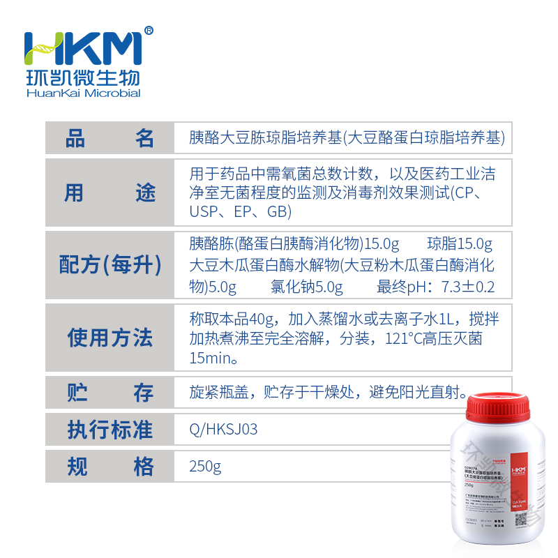 产品名称:胰酪大豆胨琼脂培养基(大豆酪蛋白琼脂培养基)(TSA)