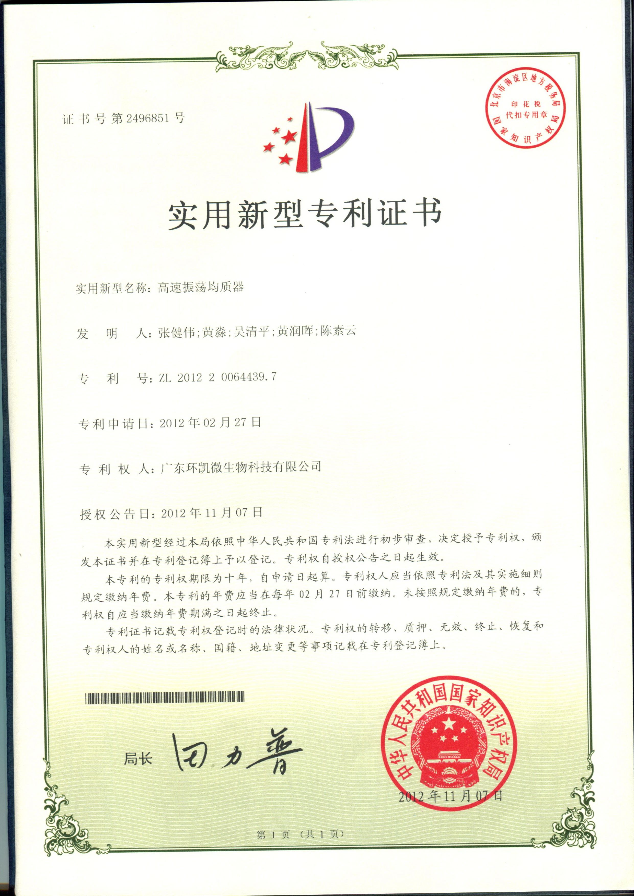 ● 获得国家发明专利和实用新型专利:(专利号:ZL 201310685079.1)(专利号ZL 2010 2 0064439.7)