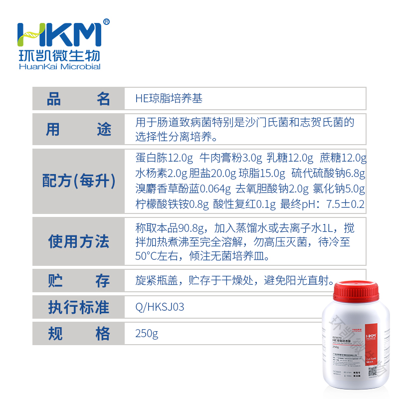 023070 HE琼脂培养基 250g/瓶 相关产品(用于沙门氏菌检验):