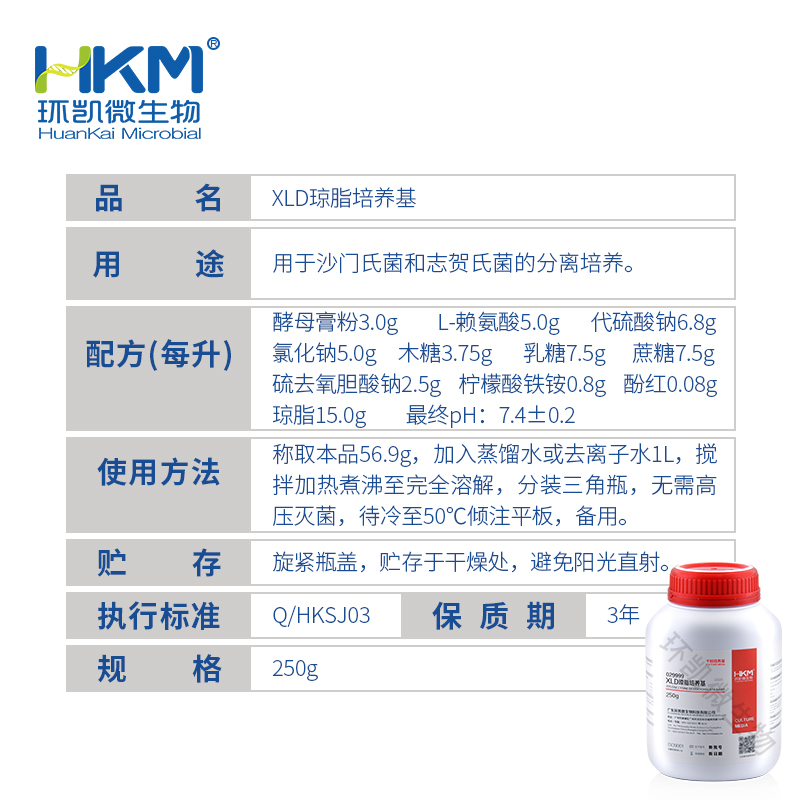 | 木糖赖氨酸脱氧胆酸盐琼脂培养基(20版药典) | 029997 | 干粉 | 250g/瓶 | 用于药品中沙门氏菌的选择分离培养。(中国药典2020年版) |