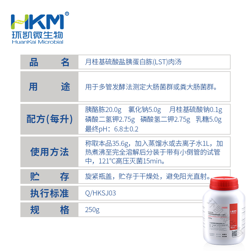 产品名称:月桂基硫酸盐胰蛋白胨肉汤(LST)
