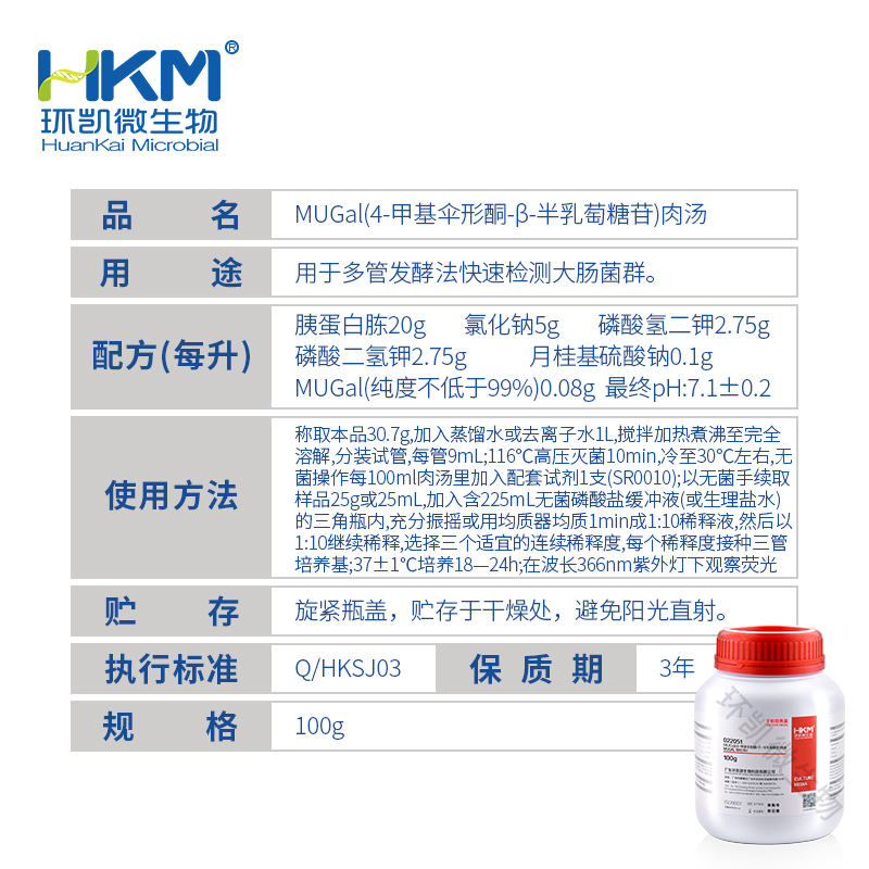 产品名称:MUGal(4-甲基伞形酮-β-半乳萄糖苷)肉汤