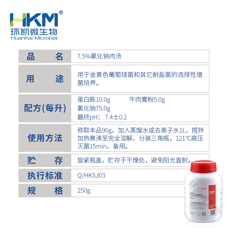 7.5%氯化钠肉汤颗粒 024010P1颗粒250g/瓶用于金黄色葡萄球菌和其它耐盐菌的选择性增菌培养(GB4789.10)