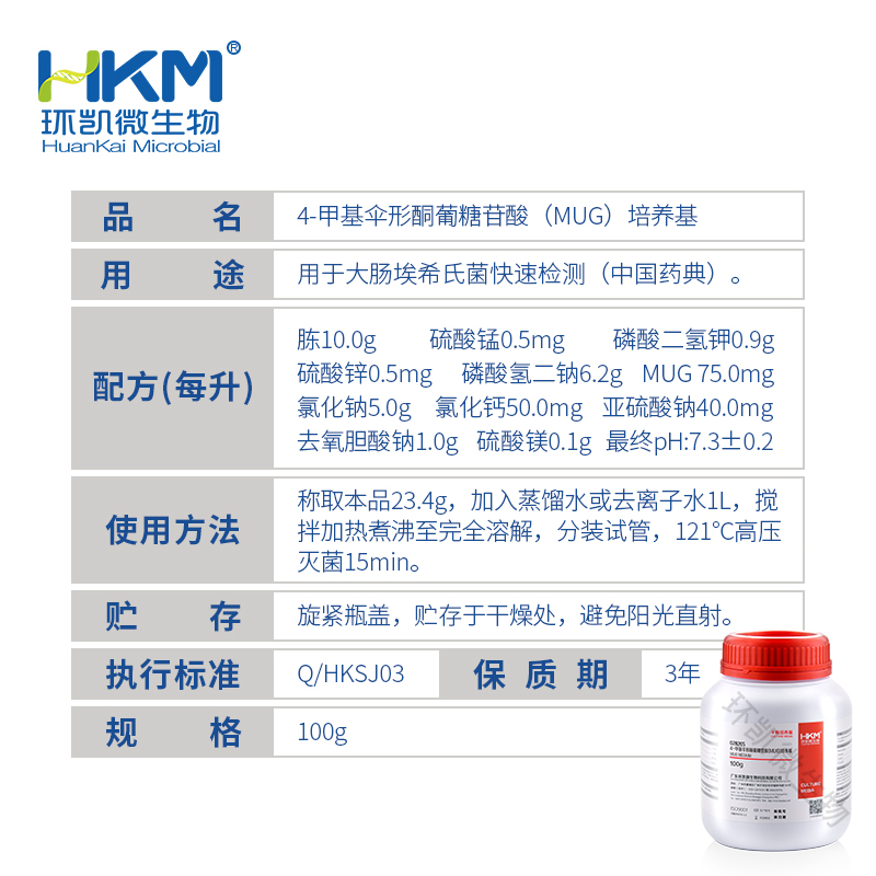 产品名称:4-甲基伞形酮葡糖苷酸(MUG)培养基