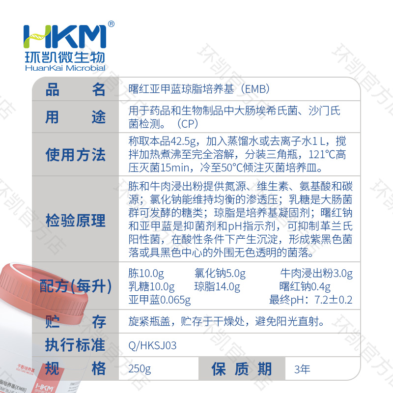 产品名称:曙红亚甲蓝琼脂培养基(EMB)