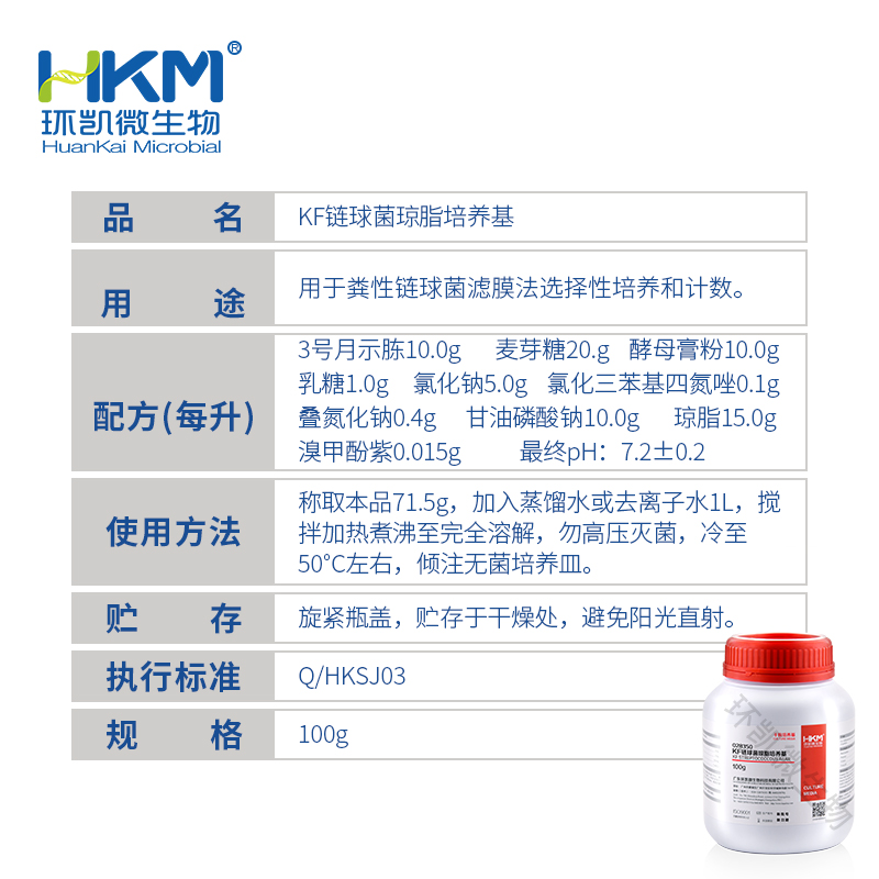 028350 KF链球菌琼脂培养基 100g/瓶 相关产品(粪链球菌(肠球菌)检验检测常用培养基):