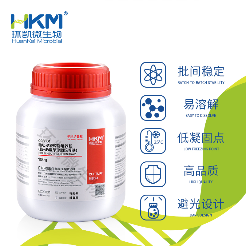 环凯 028363 脑心浸液琼脂培养基 可用于矿泉水和城市供水中粪性链球菌滤膜法的确证性实验!