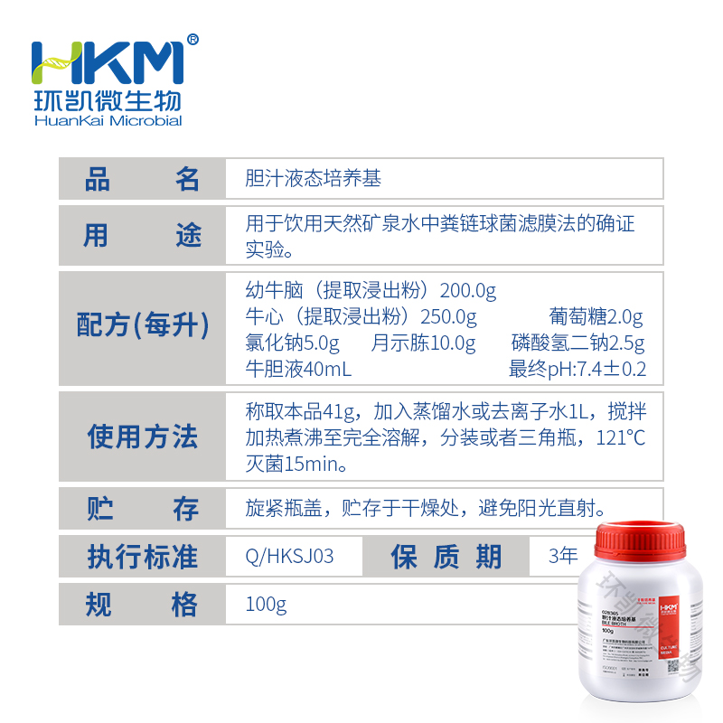 028365 胆汁液态培养基 100g/瓶(粪链球菌(肠球菌)检验检测常用培养基):