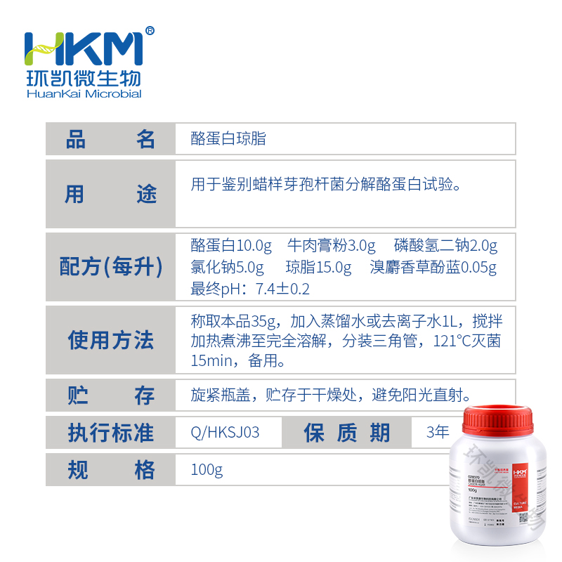 产品用途:用于鉴别蜡样芽孢杆菌分解酪蛋白试验。