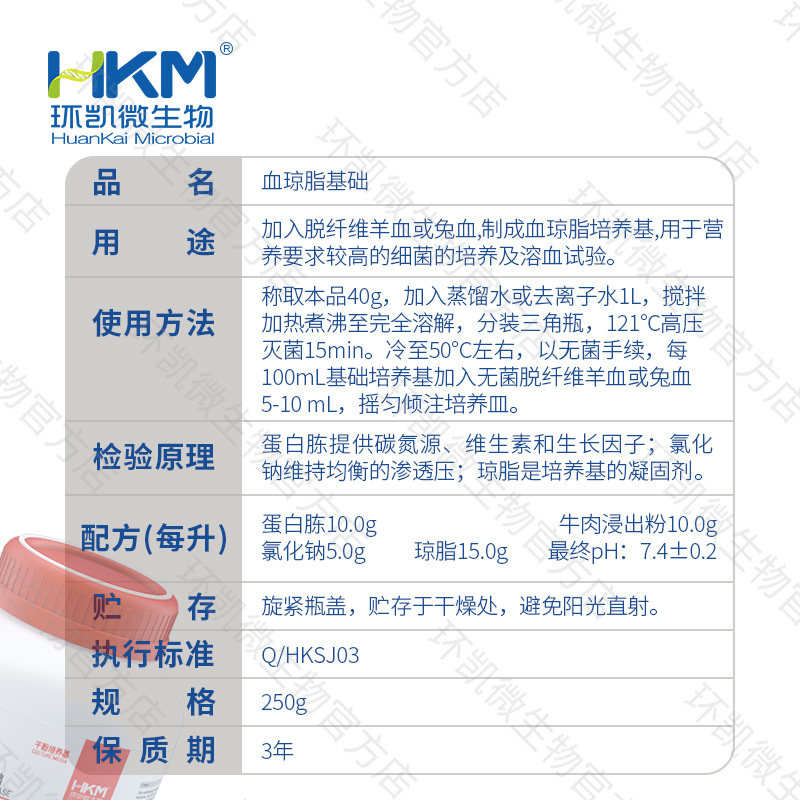 产品用途:加入脱纤维羊血或兔血,制成血琼脂培养基,用于营养要求较高的细菌的培养及溶血试验。