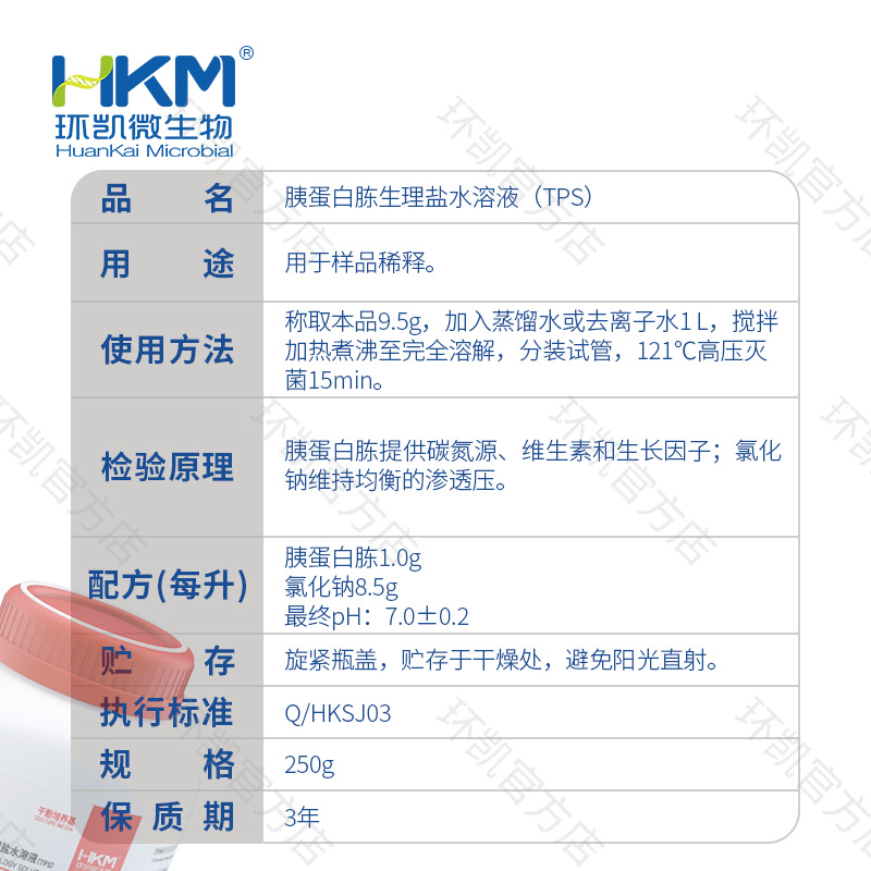 产品名称:胰蛋白胨生理盐水溶液(TPS)