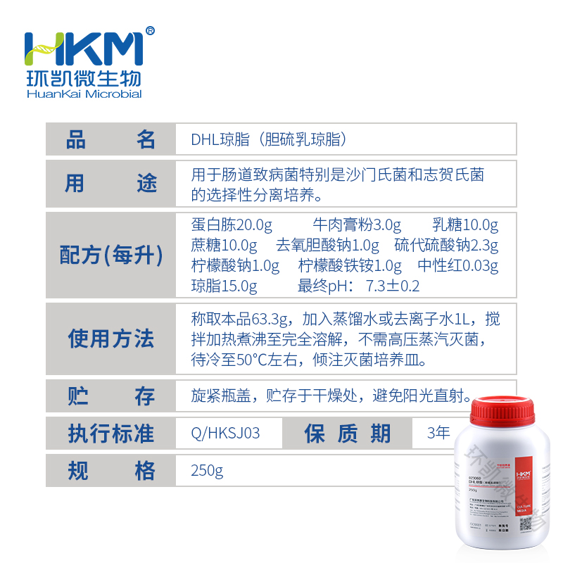 胆盐硫乳琼脂培养基(DHL)(药典) 023062干粉250g/瓶用于肠道致病菌特别是沙门氏菌和志贺氏菌的选择性分离培养(药典)