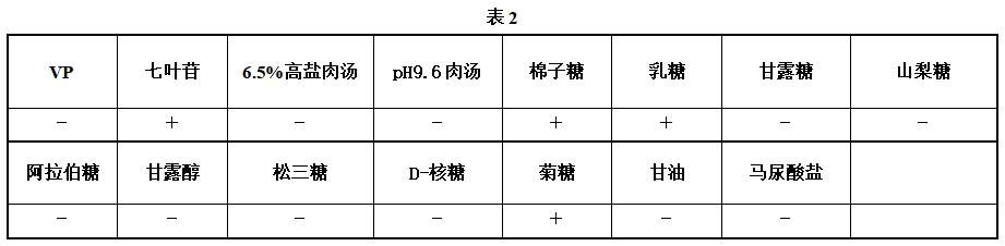 | 葡糖糖磷酸盐胨水(VP) | 红色 | 不变色 | 48 | 培养后依次加入8滴VP试剂甲液及4滴乙液,混匀,再培养10-20分钟观察结果。 |