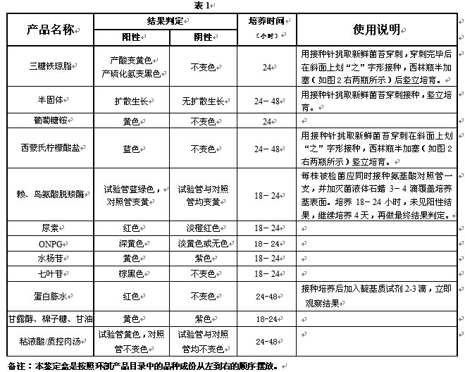 注意:如有特殊的接种方式、培养时间或培养方式,请详见每种生化鉴定管附带的使用说明。