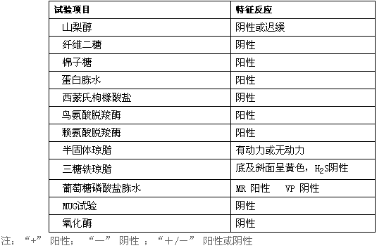 四)出血性大肠杆菌O157:H7的生化鉴定程序(见下图)和生化鉴定特征(见表2)