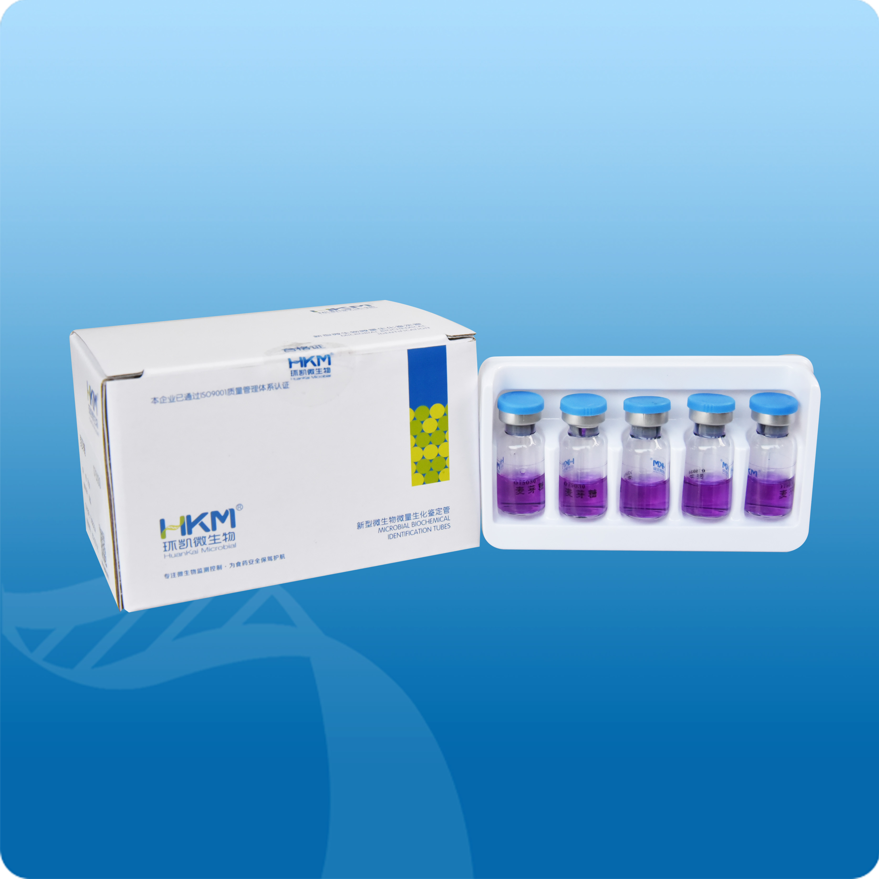 挑取待检菌落进行革兰氏染色镜检,将新鲜菌苔接种于普通肉汤中37℃培养18-24h或用0.85%无菌生理盐水稀释至0.5McFa-rland  (约108cfu/mL), 各吸取0.05-0.08mL(约1~2滴)的肉汤培养物或菌悬液加入每种微量西林瓶内。将已接种的西林瓶再套上胶塞,一般采用全加塞(如图2左两瓶所示),特殊情况在下表注明采用半加塞(如图2右两瓶所示),直立于内托的凹槽内(如图2),或放置于合适的瓶架中,于35-37℃培养箱中培养,结果观察见下表1。注意:如有特殊的接种方式、培养时间或培养方式,请详见每种生化鉴定管附带的使用说明。