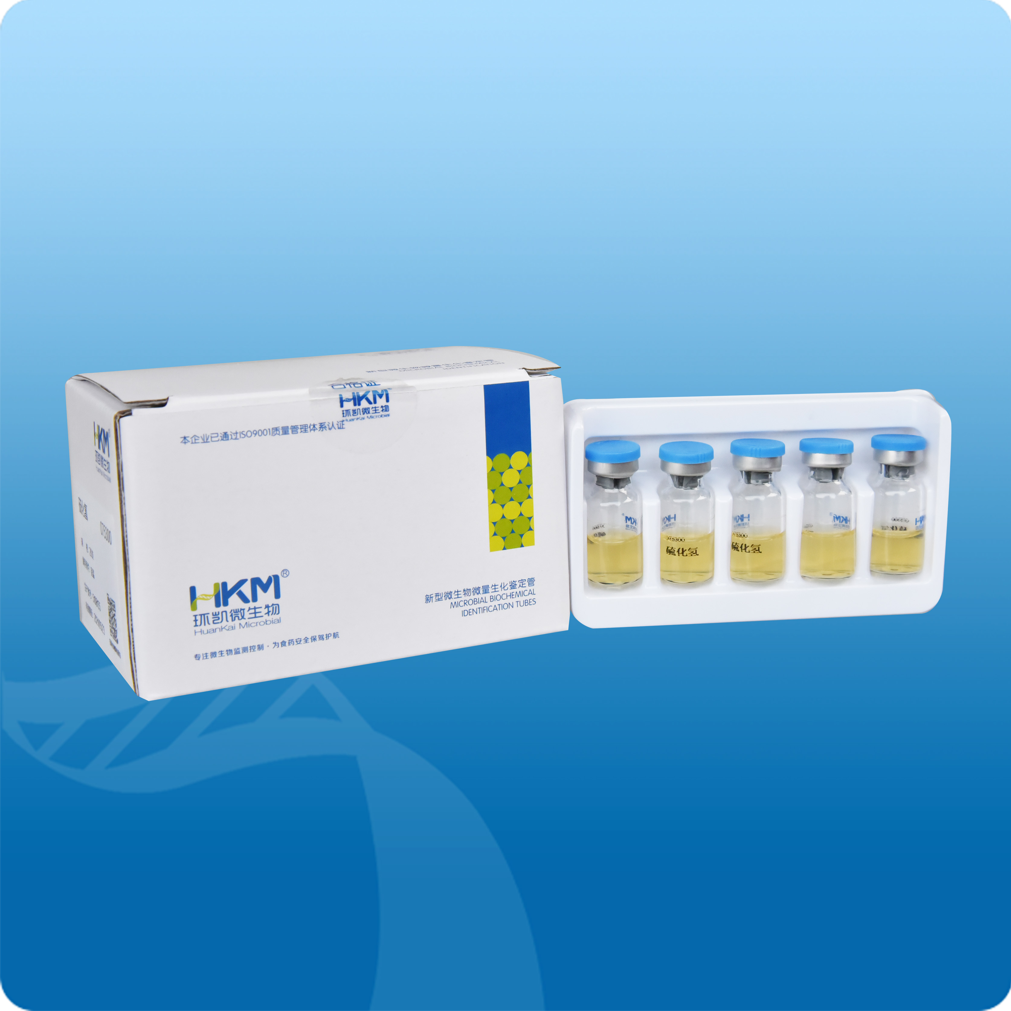 挑取待检菌落进行革兰氏染色镜检,将新鲜菌苔接种于普通肉汤中37℃培养18-24h或用0.85%无菌生理盐水稀释至0.5McFa-rland  (约108cfu/mL), 各吸取0.05-0.08mL(约1~2滴)的肉汤培养物或菌悬液加入每种微量西林瓶内。将已接种的西林瓶再套上胶塞,一般采用全加塞(如图2左两瓶所示),特殊情况在下表注明采用半加塞(如图2右两瓶所示),直立于内托的凹槽内(如图2),或放置于合适的瓶架中,于35-37℃培养箱中培养,结果观察见下表1。注意:如有特殊的接种方式、培养时间或培养方式,请详见每种生化鉴定管附带的使用说明。