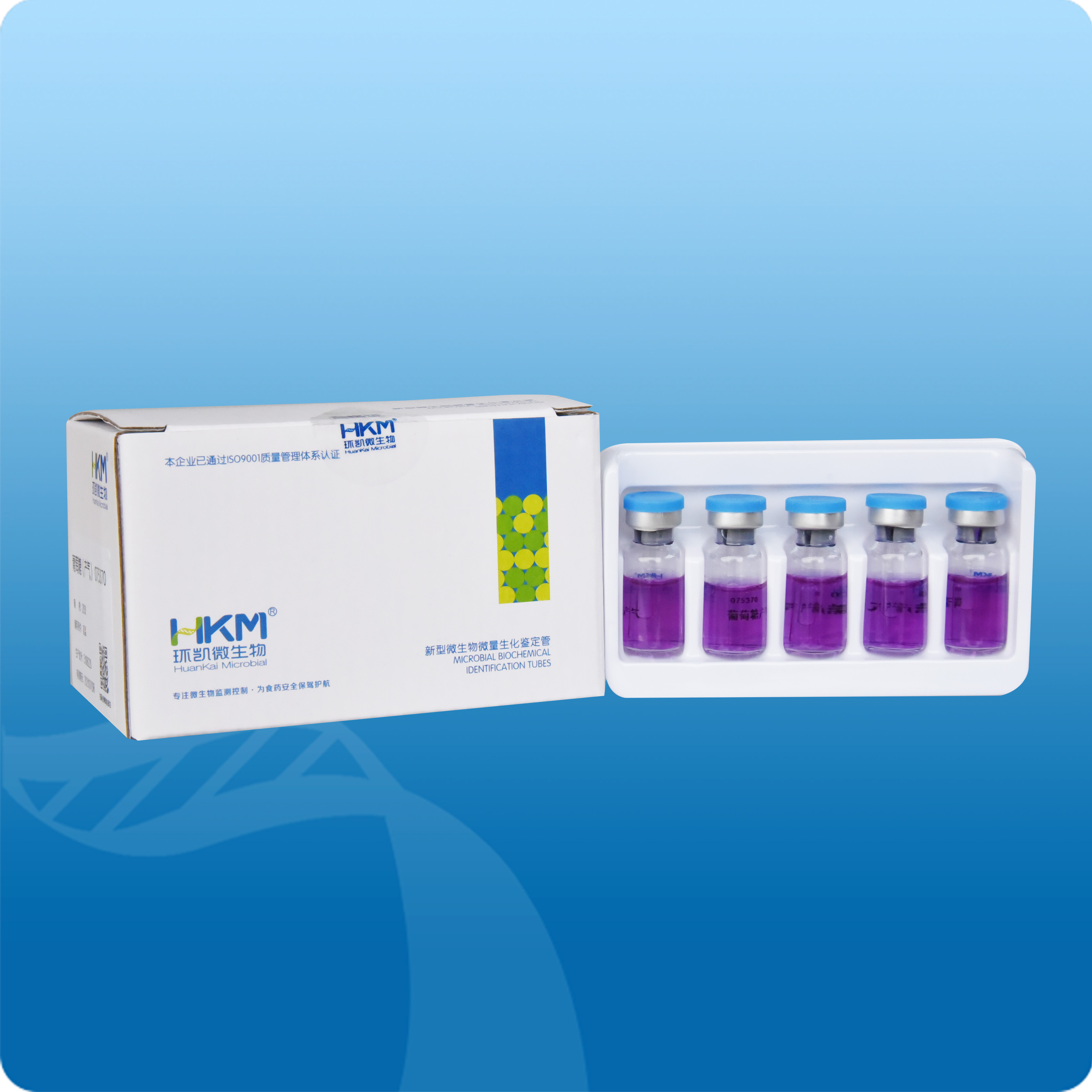 挑取待检菌落进行革兰氏染色镜检,将新鲜菌苔接种于普通肉汤中37℃培养18-24h或用0.85%无菌生理盐水稀释至0.5McFa-rland (约108cfu/mL), 各吸取0.05-0.08mL(约1~2滴)的肉汤培养物或菌悬液加入每种微量西林瓶内。将已接种的西林瓶再套上胶塞,一般采用全加塞(如图2左两瓶所示),特殊情况在下表注明采用半加塞(如图2右两瓶所示),直立于内托的凹槽内(如图2),或放置于合适的瓶架中,于35-37℃培养箱中培养,结果观察见下表1。注意:如有特殊的接种方式、培养时间或培养方式,请详见每种生化鉴定管附带的使用说明。