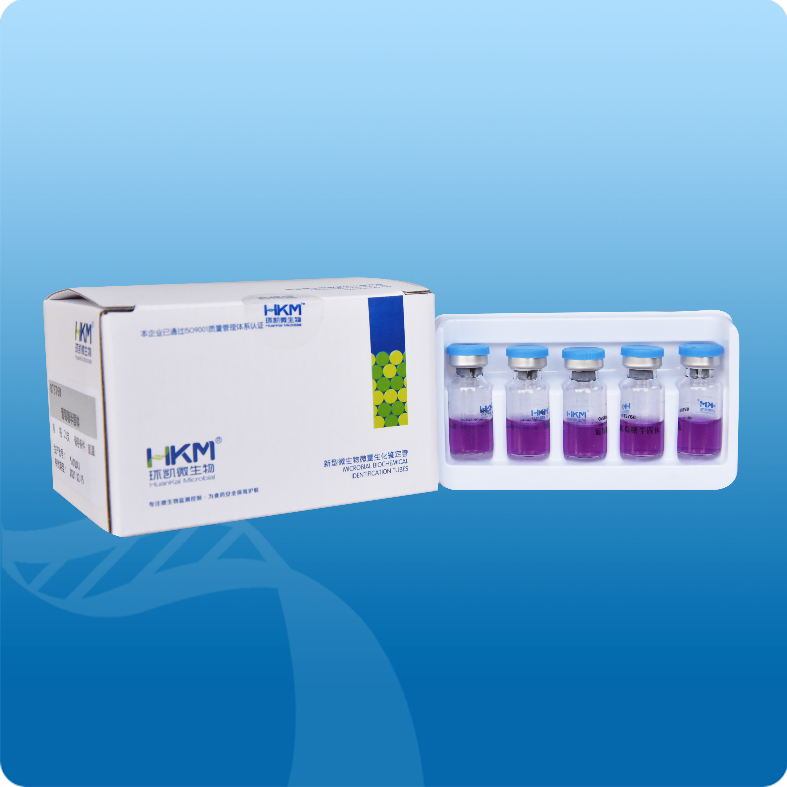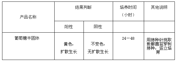 挑取待检菌落进行革兰氏染色镜检,将新鲜菌苔接种于普通肉汤中37℃培养18-24h或用0.85%无菌生理盐水稀释至0.5McFa-rland (约108cfu/mL), 各吸取0.05-0.08mL(约1~2滴)的肉汤培养物或菌悬液加入每种微量西林瓶内。将已接种的西林瓶再套上胶塞,一般采用全加塞(如图2左两瓶所示),特殊情况在下表注明采用半加塞(如图2右两瓶所示),直立于内托的凹槽内(如图2),或放置于合适的瓶架中,于35-37℃培养箱中培养,结果观察见下表1。注意:如有特殊的接种方式、培养时间或培养方式,请详见每种生化鉴定管附带的使用说明。