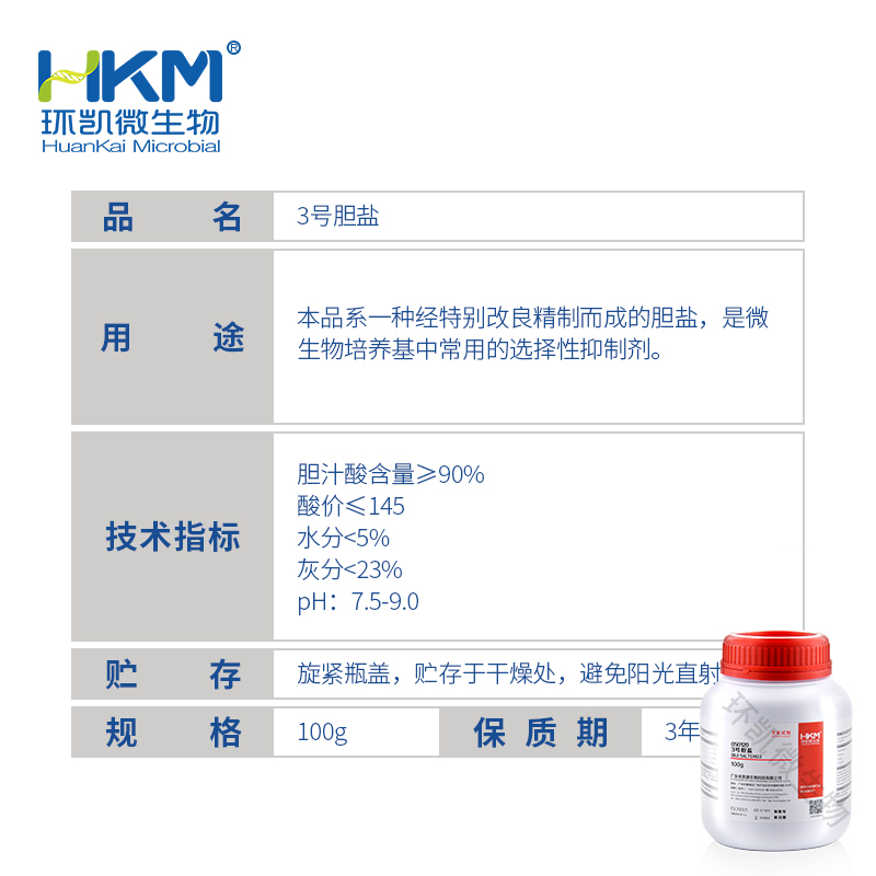 050120 3号胆盐(培养基原材料) 100g/瓶