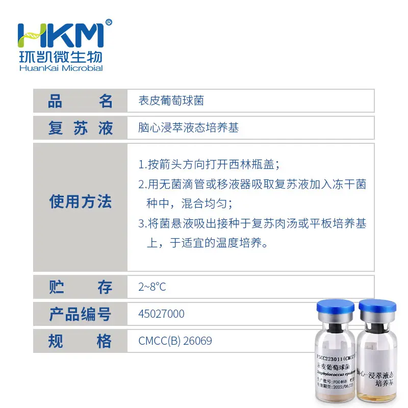 定性质控标准菌株表皮葡萄球菌CMCC(B)26069(冻干粉)使用方法: