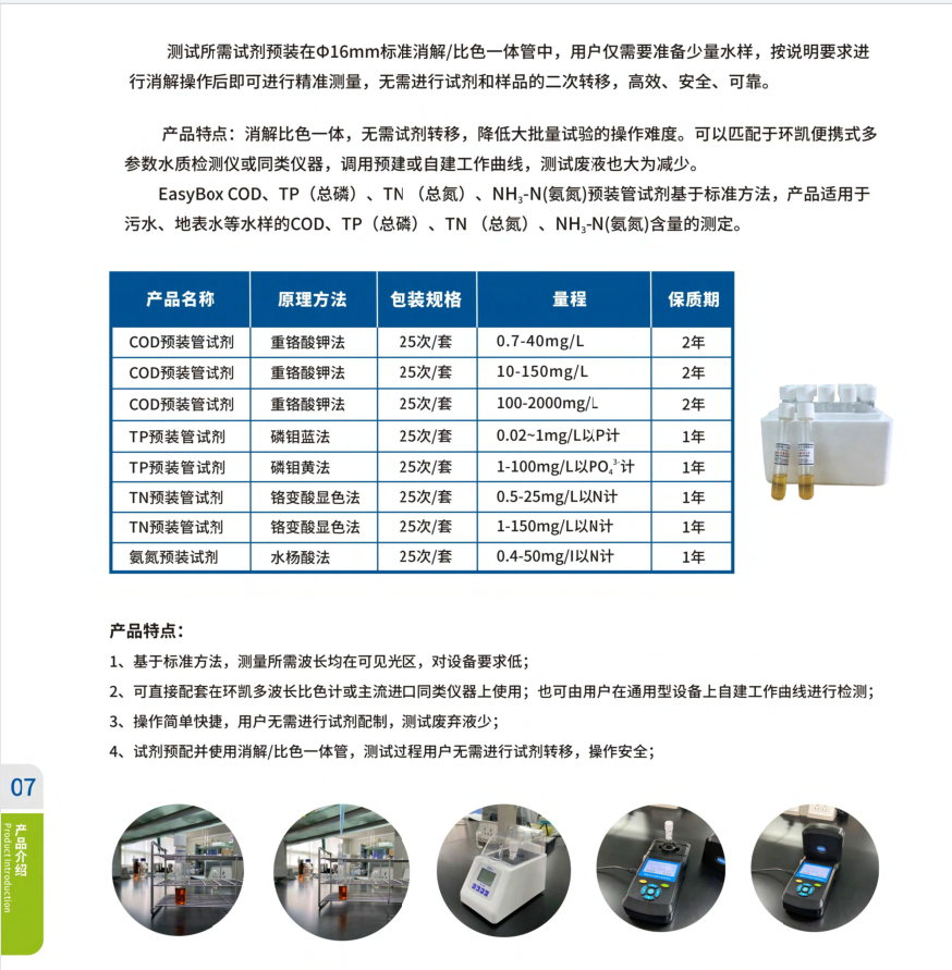 由广东环凯微生物科技有限公司新开发的一款用于水中COD快速测定仪器,适用于现场快速检测和实验室使用。