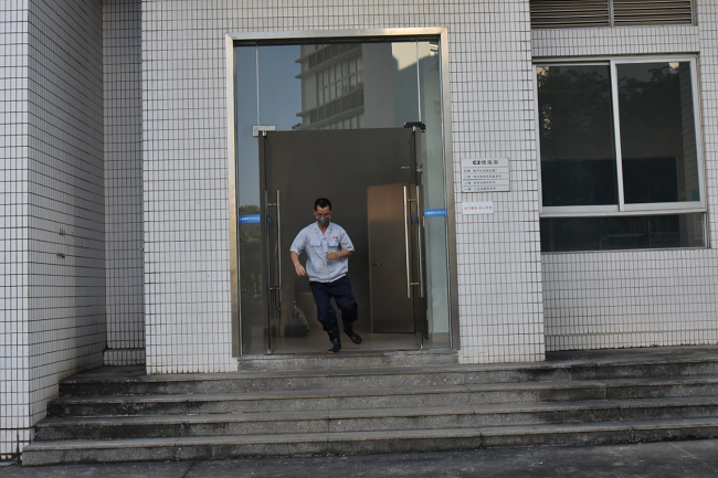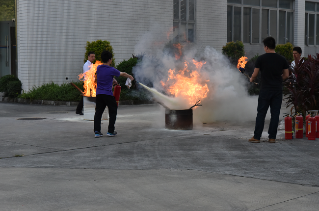 在结束了培训知识课后,公司组织了一次疏散演习,所有员工回到了工作岗位上。在突然响起警铃下,再配合烟雾弹的效果,营造了一个逼真的演习环境,所有员工安全迅速疏散到空地上。
