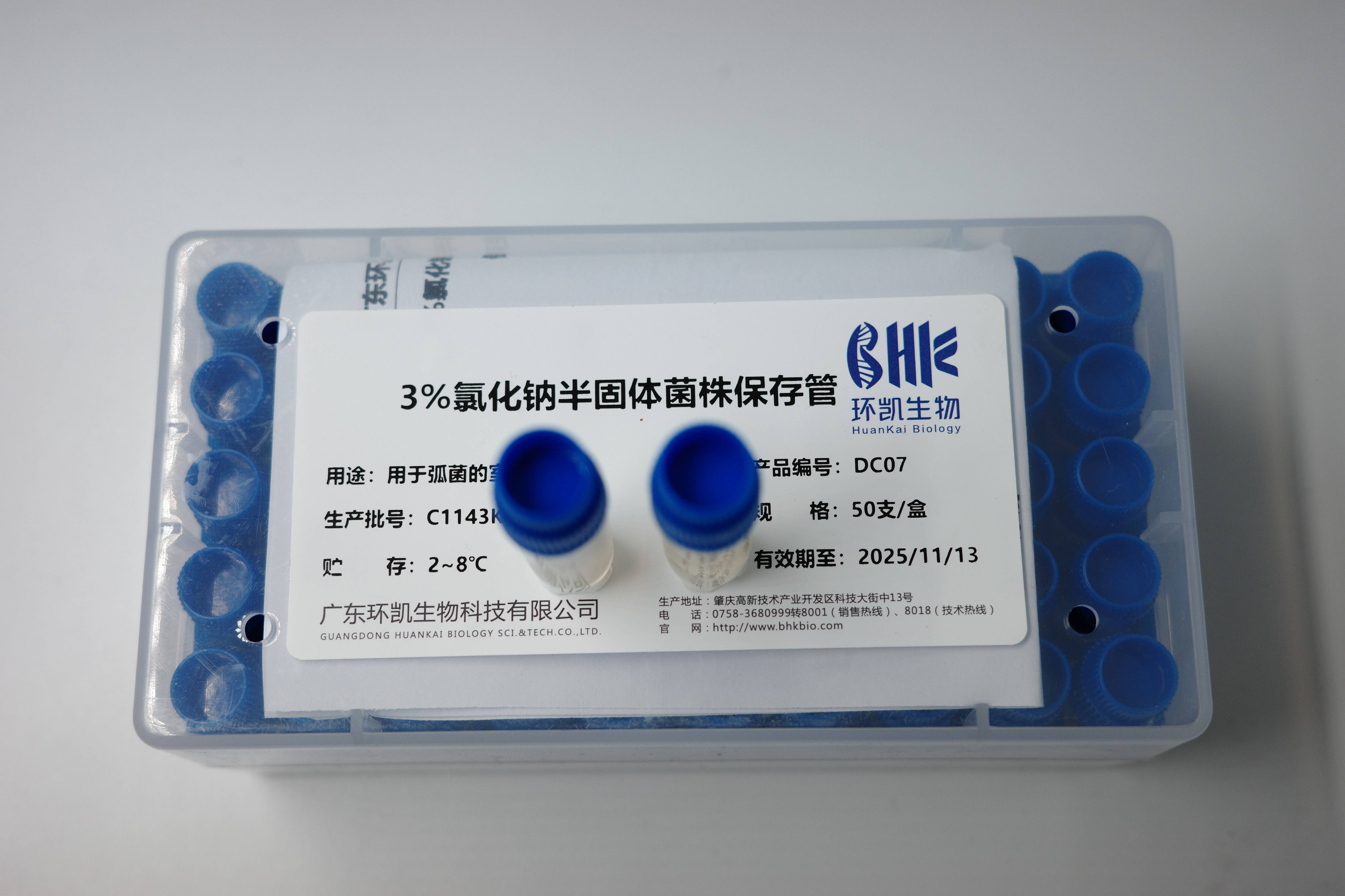 使用说明:无菌操作,挑取待保藏的菌种,穿刺接种至3%氯化钠半固体菌株保存管中,于36±1℃培养18-24h后。加入无菌液体石蜡,液体石蜡用量以高出半固体 0.5 cm 为准,使菌种与空气隔绝。将试管直立,置室温保存。储存菌株时,建议保存管的有效期仍有一年或以上。