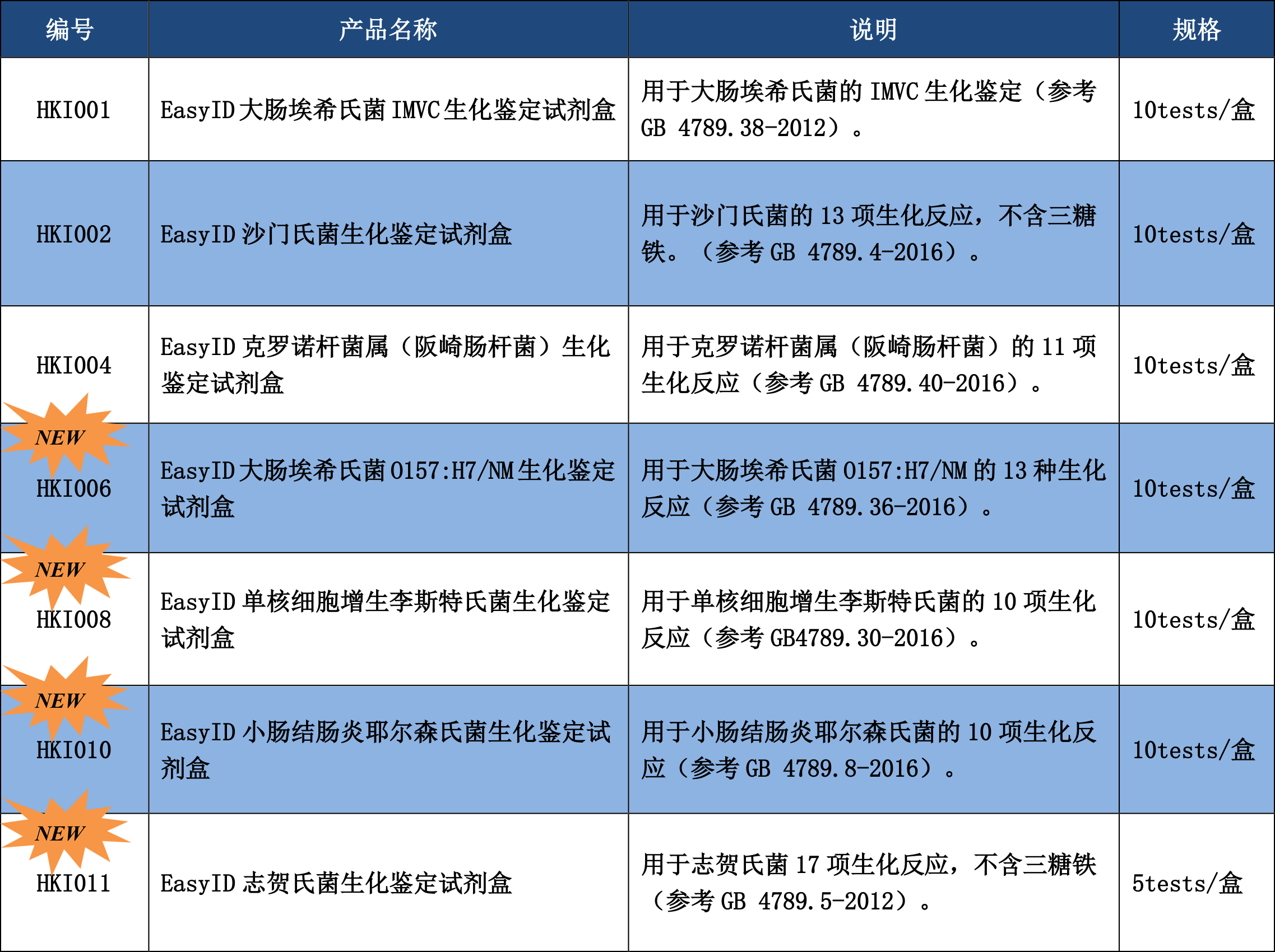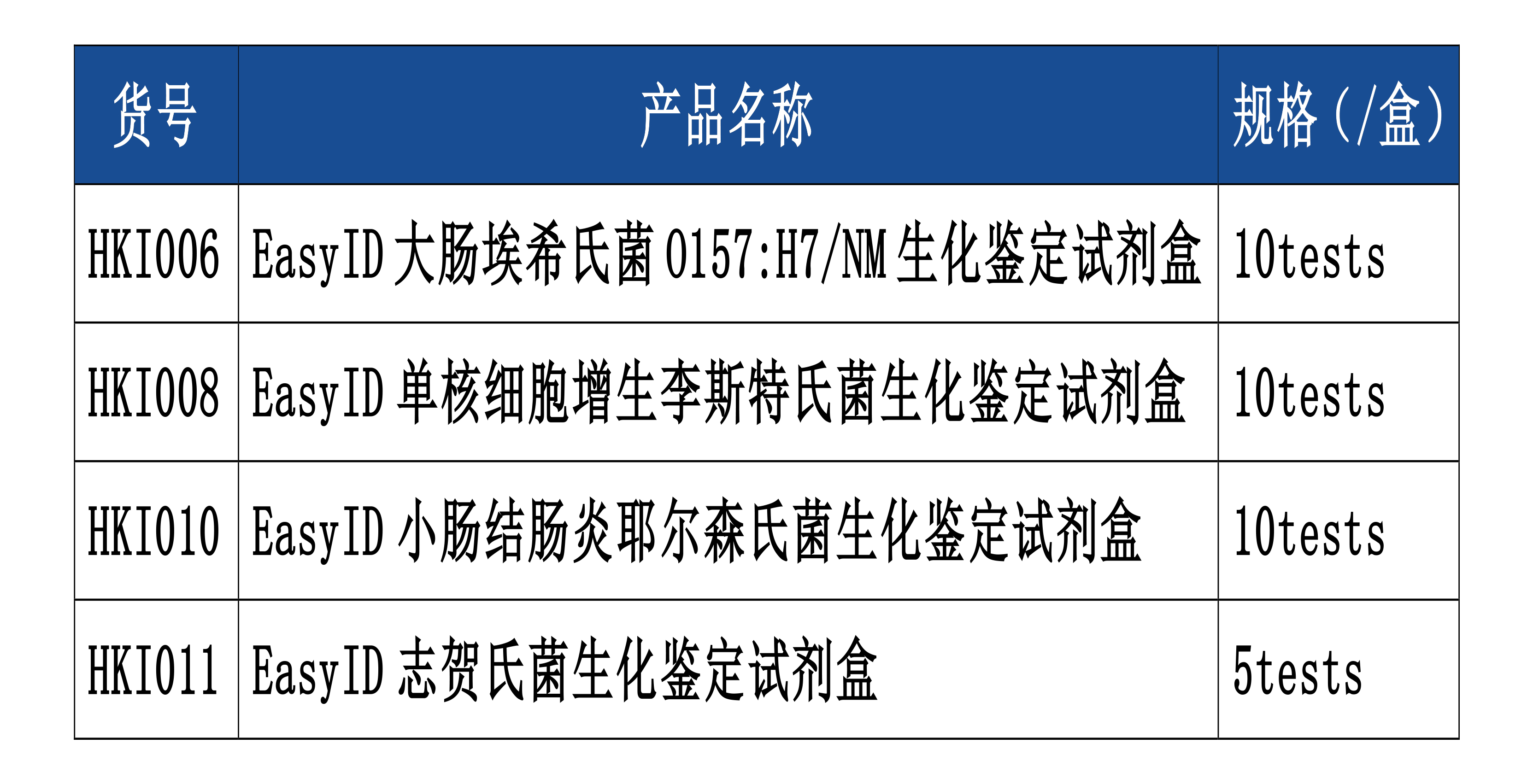 EasyID生化鉴定试剂盒产品订购信息