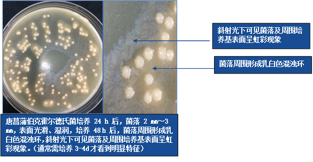 自选择性琼脂平板上分别挑取5个以上典型或可疑菌落,分区划线卵黄琼脂平板,36℃±1℃培养。挑取培养18~24 h的菌落进行革兰氏染色及氧化酶试验。对于革兰氏染色阴性、氧化酶试验阴性的菌继续培养至48 h±2 h,对于卵磷脂酶阳性,带有虹彩环的单个菌落,接种PDA平板,36℃±1℃培养24 h±2 h。