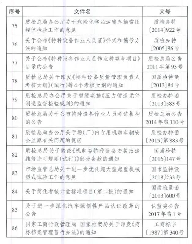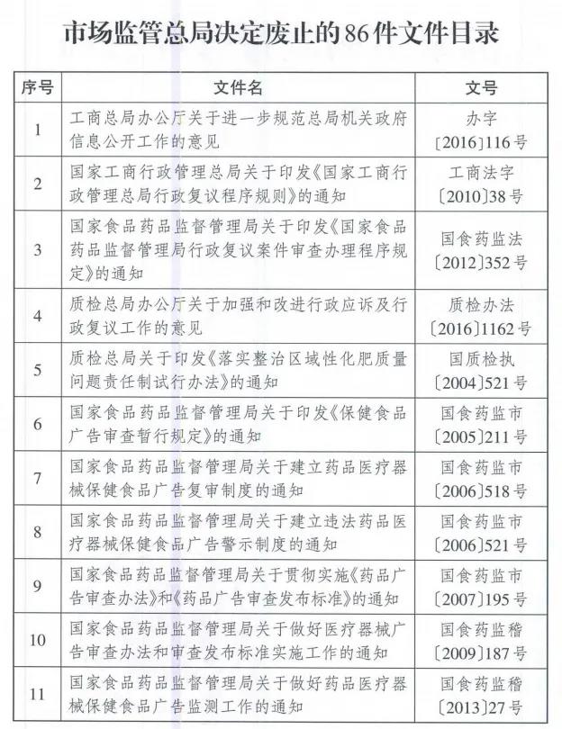 为适应改革和经济社会发展要求,经商国务院有关部门,决定废止《工商总局办公厅关于进一步规范总局机关政府信息公开工作的意见》等86件文件,现予以公告。