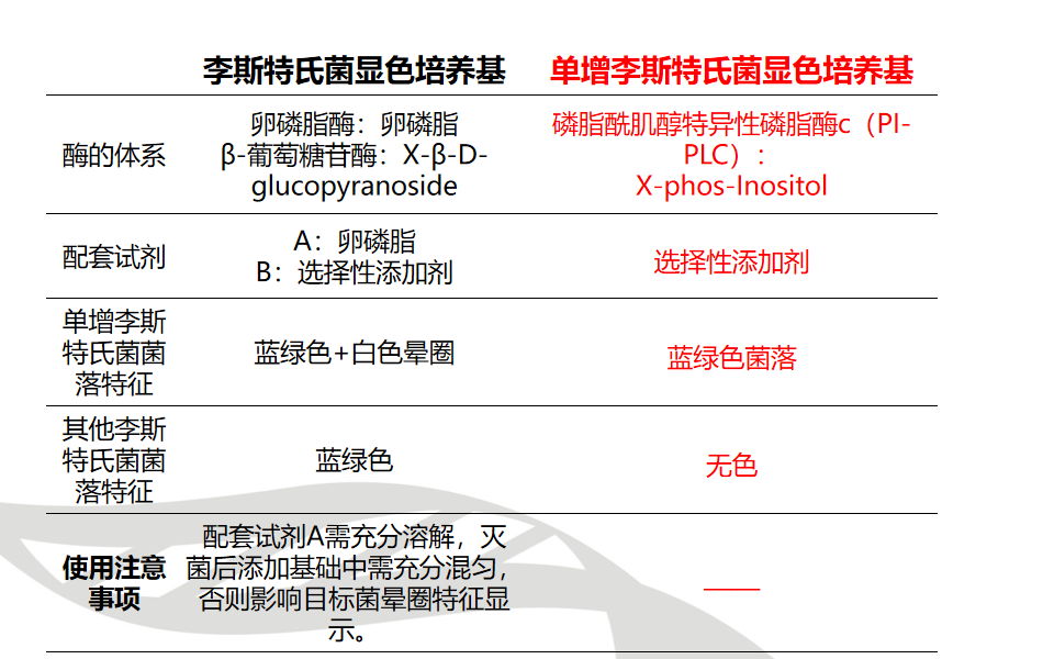 李斯特氏菌显色培养基与单增李斯特氏菌显色培养基的对比
