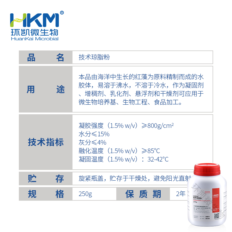 产品用途:本品由海洋中生长的红藻为原料精制而成的水胶体,易溶于沸水,不溶于冷水,作为凝固剂、增稠剂、乳化剂、悬浮剂和干燥剂,应用于微生物培养基生产、生物工程、食品加工等。