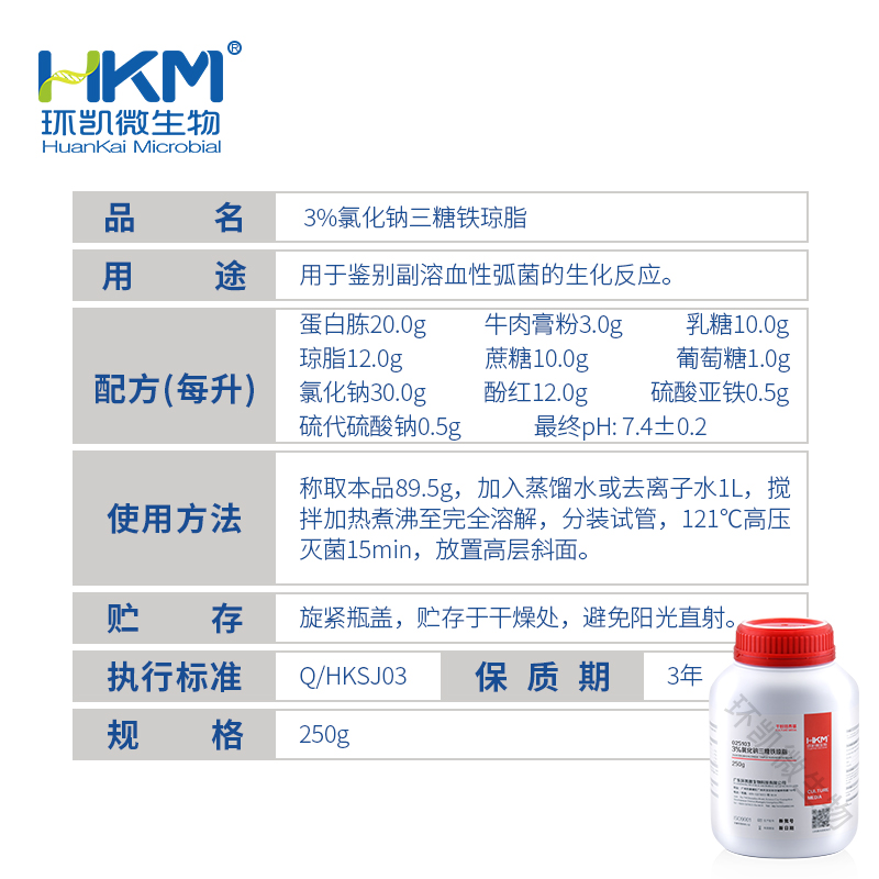 025103 3%氯化钠三糖铁琼脂 250g/瓶 相关产品(生化鉴定检验检测常用培养基):