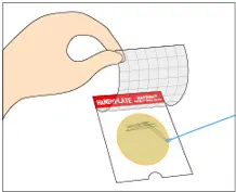 2;将测试片放在水平台面上,揭开覆膜,将 1mL 样品液滴加在纸片中心。 |
