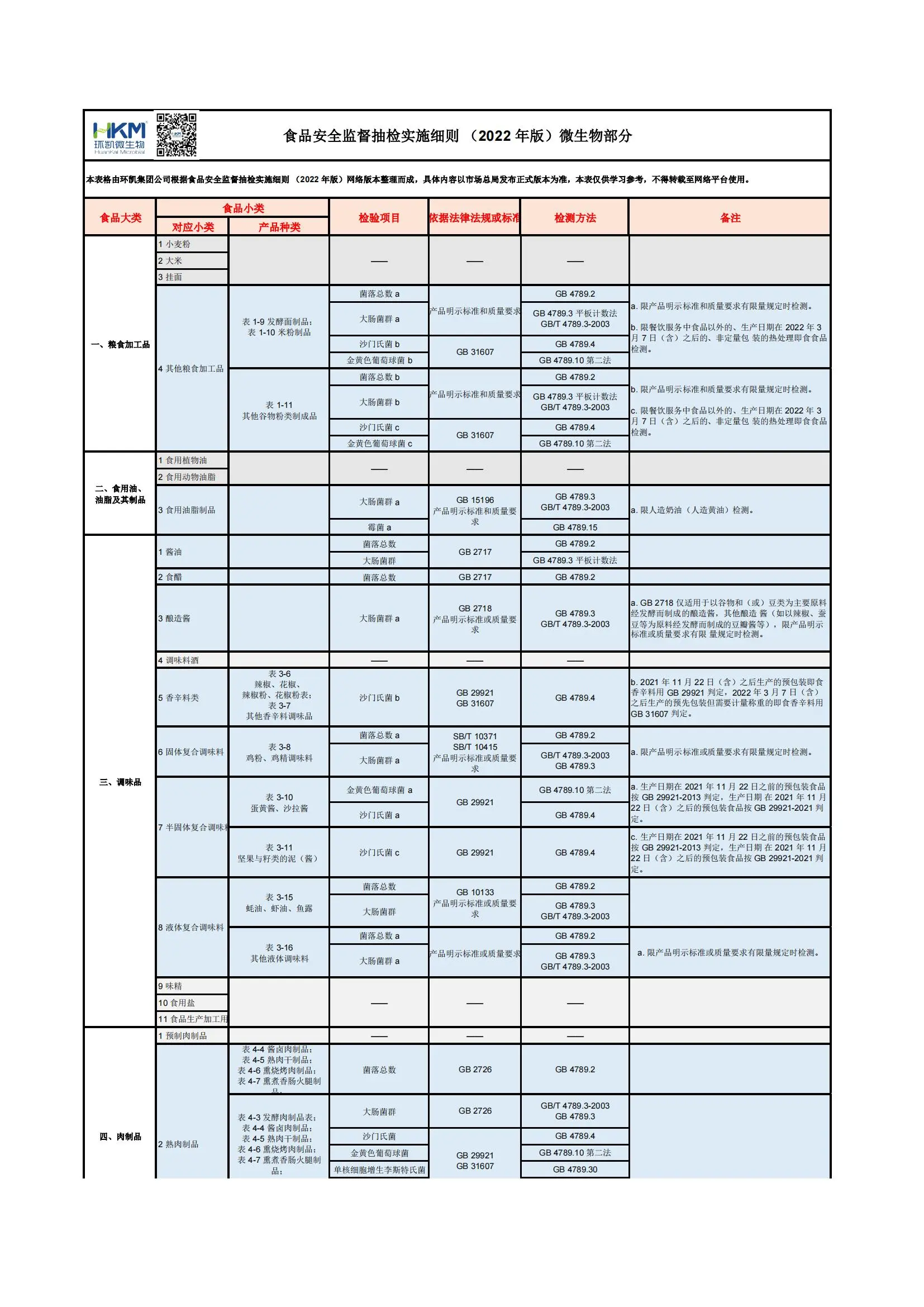 1,2022年食品安全监督抽检实施细则 - 微生物部分