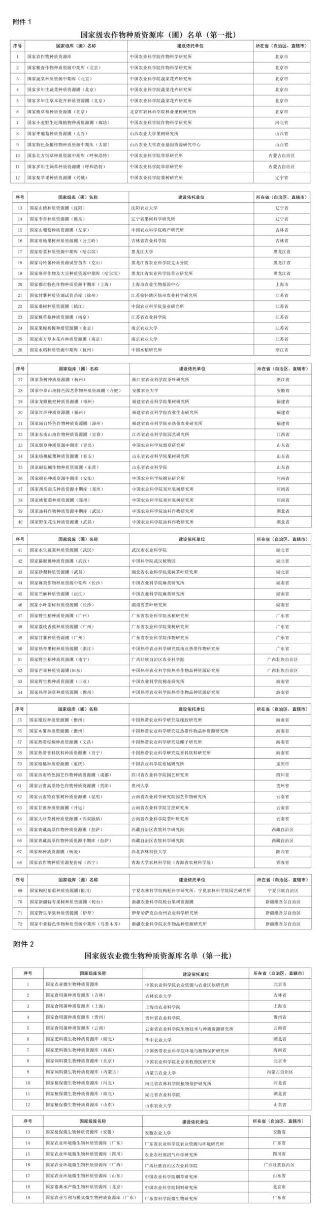 附件:1.国家级农作物种质资源库(圃)名单(第一批)